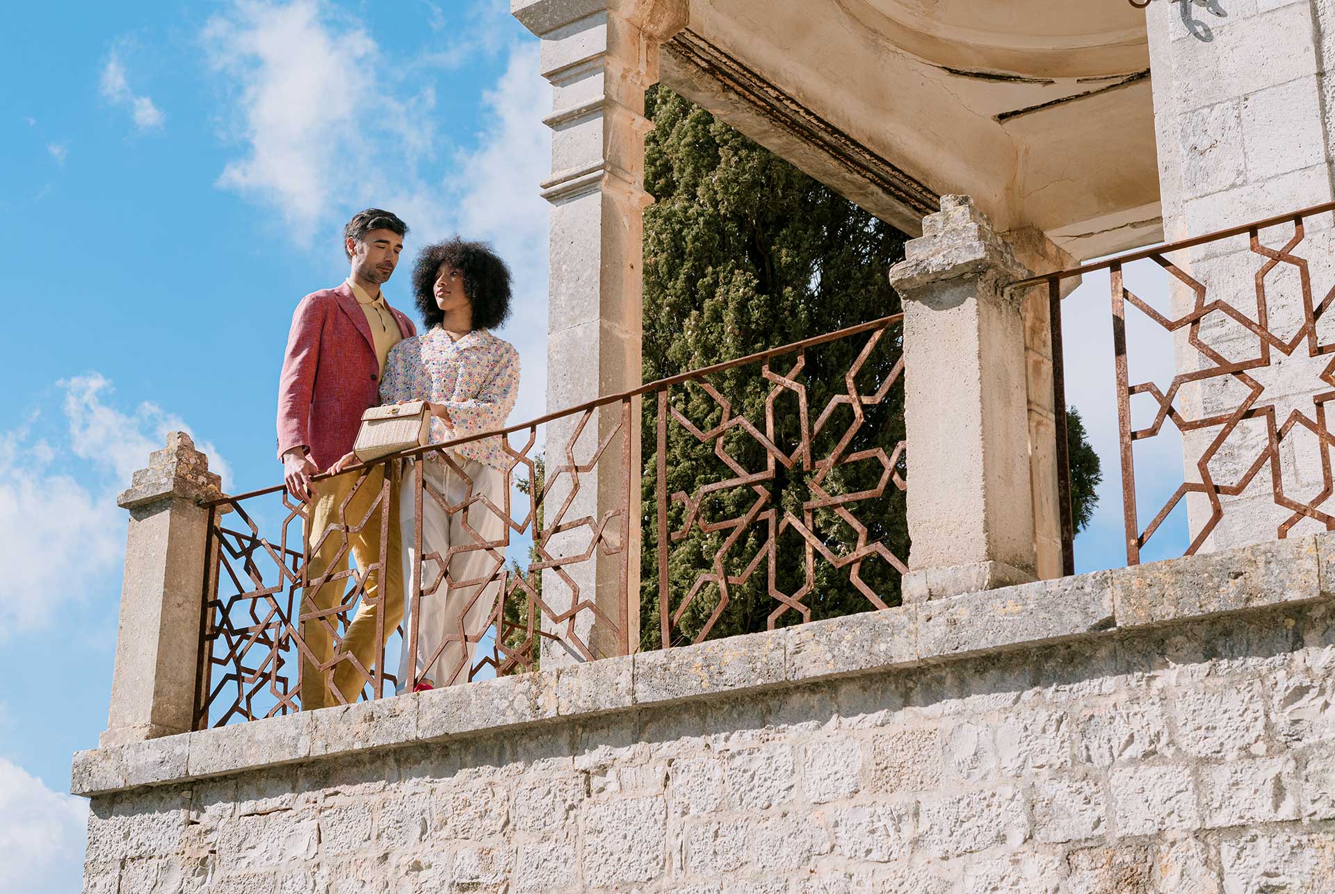 Il mood di Mediterannean Vibes SS22 si riverbera nel Minareto di Fasano, una residenza signorile dall’architettura in stile moresco, scelta come palcoscenico per la realizzazione della campagna pubblicitaria.