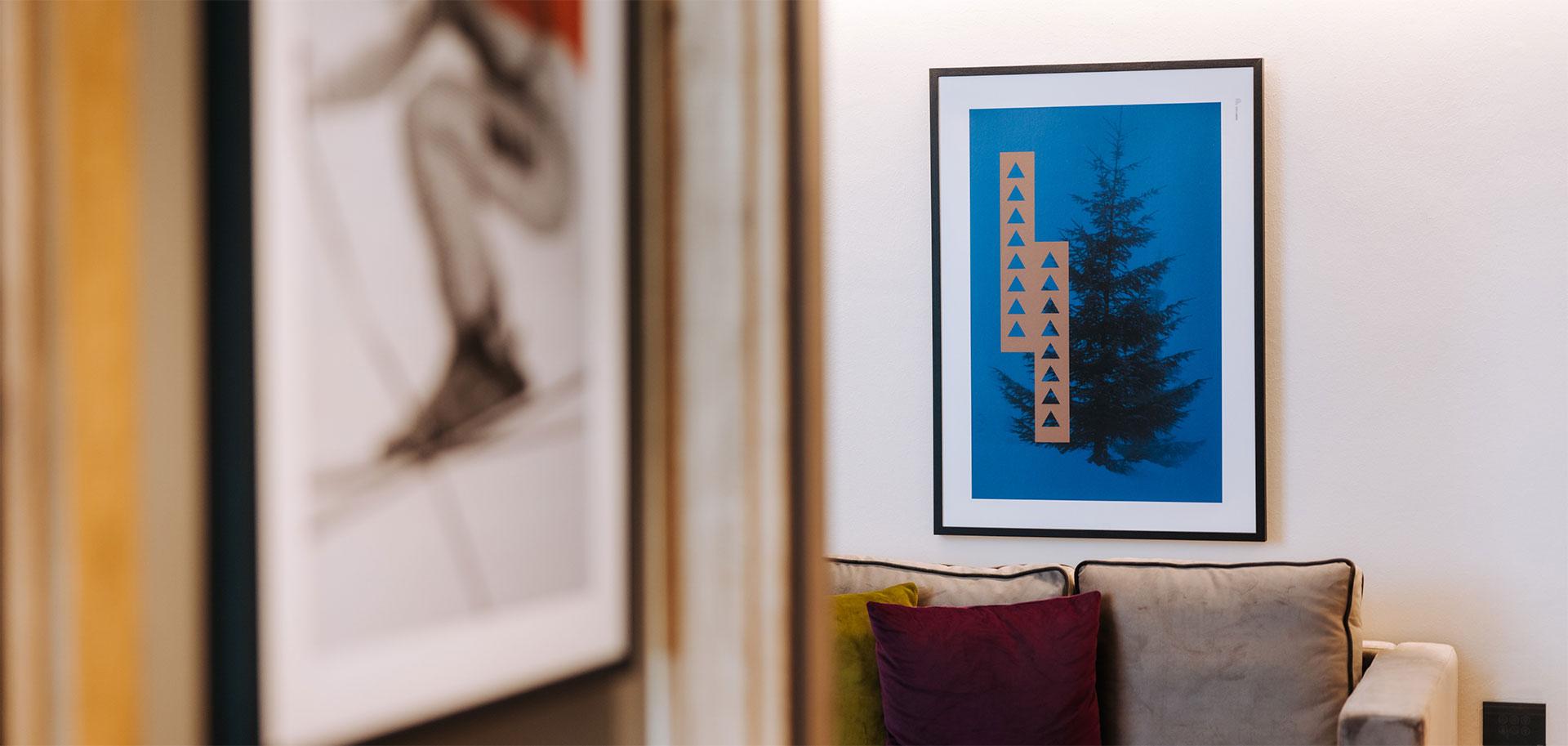 Ogni camera di Valtur Cristallo Ski Resort è personalizzata con quadri grafici che esprimono l’identità visual, rendendola tangibile ed esperienziale.