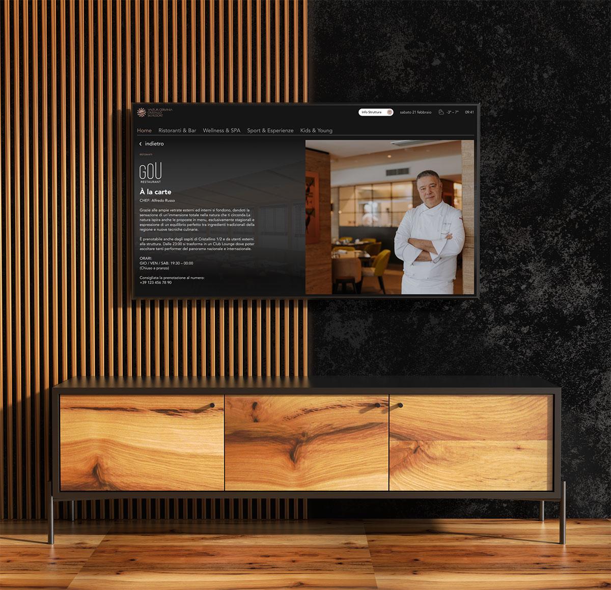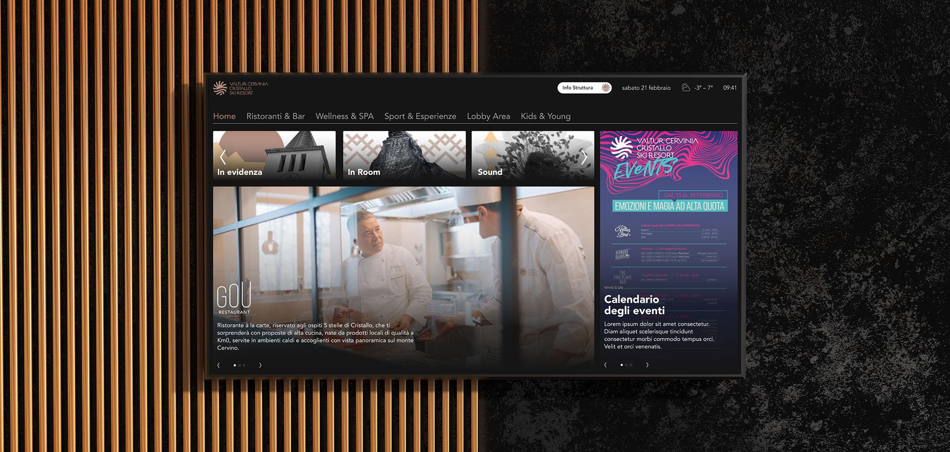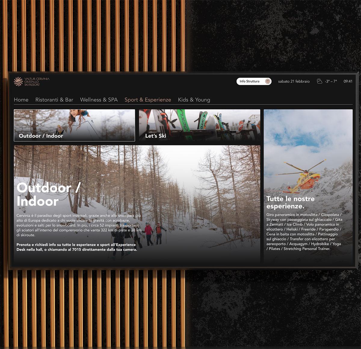 In collaborazione con Samsung abbiamo disegnato le pagine delle IPTV e scritto i contenuti che raccontano e presentano la struttura in modo dettagliato ed esaustivo. L’ospite ha a portata della sua camera tutto ciò di cui ha bisogno.